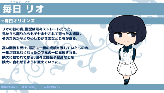 髪型はMのロゴマークより。新聞社ということもあって優兎と雰囲気が似ている。