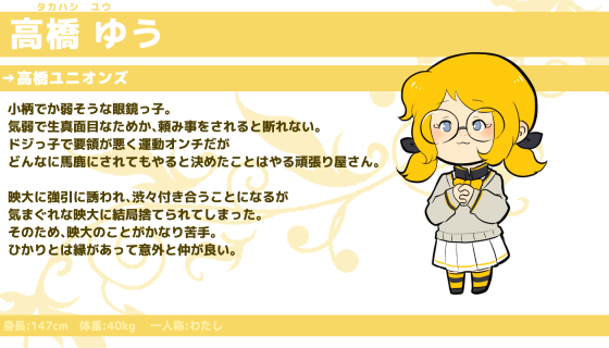 名前は「ユニオンズ」を直訳した「融合」より「ゆう」。