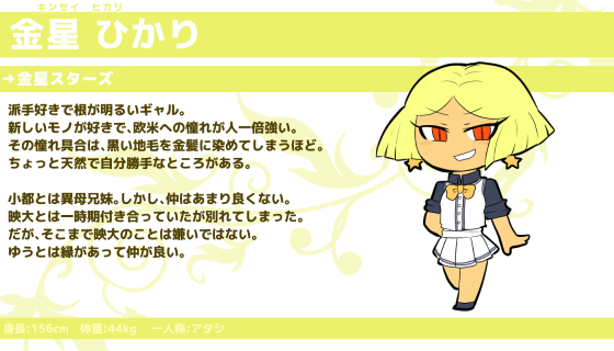 目が赤いのは朝日のイメージ。「スター」だから瞳も星っぽく。でも星太とは関係ないので黒色。